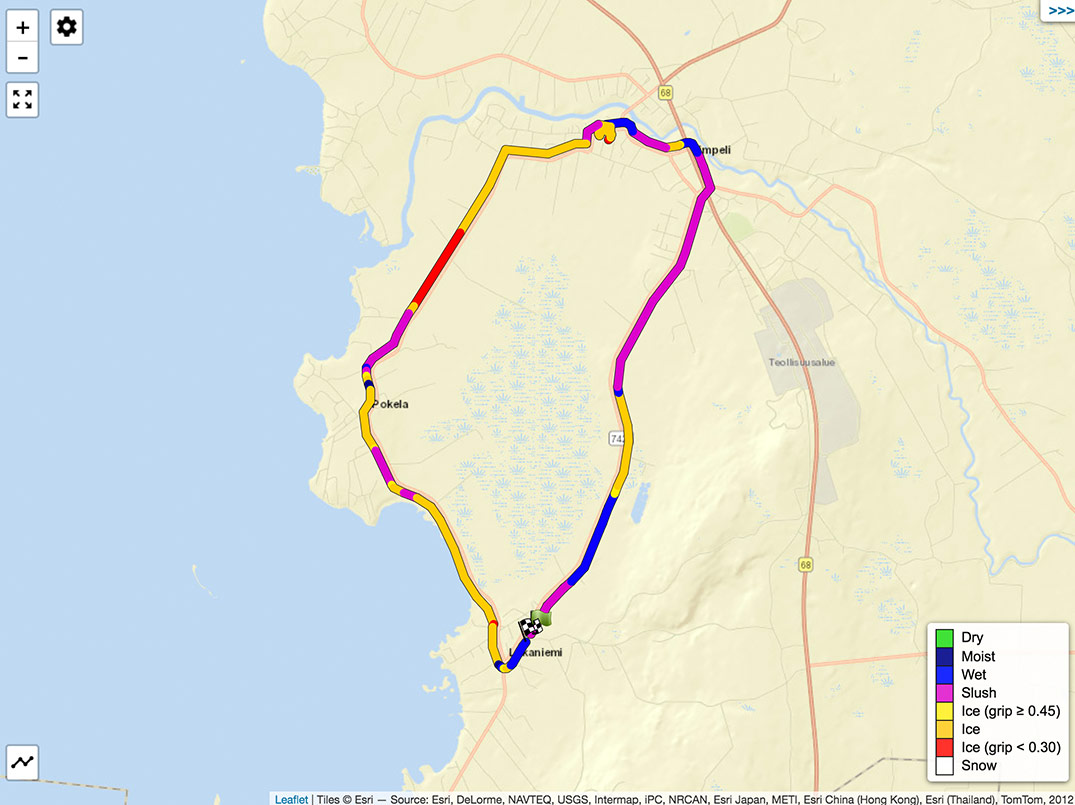 Although there was no dry surface in this test, we know that RCM411 detects dry pavement very well in all circumstances. That is very important to know, because the dry surface seldom freezes, or at least does not rapidly become slippery. Many of our customers and partners are thus investigating the possibility to automatically control the salt spreader base on the measured water amount and maybe weather forecast. In a Swedish article the conclusion is that that kind of method would lead to significant reduction in salt use. Also the statistical (repeated measurements) amount of water on a certain road section might give a signal of expected problems in winter maintenance. As far as we know, this kind of “water mapping” has not taken place anywhere. The RCM411 would be an excellent sensor in gathering the data.
